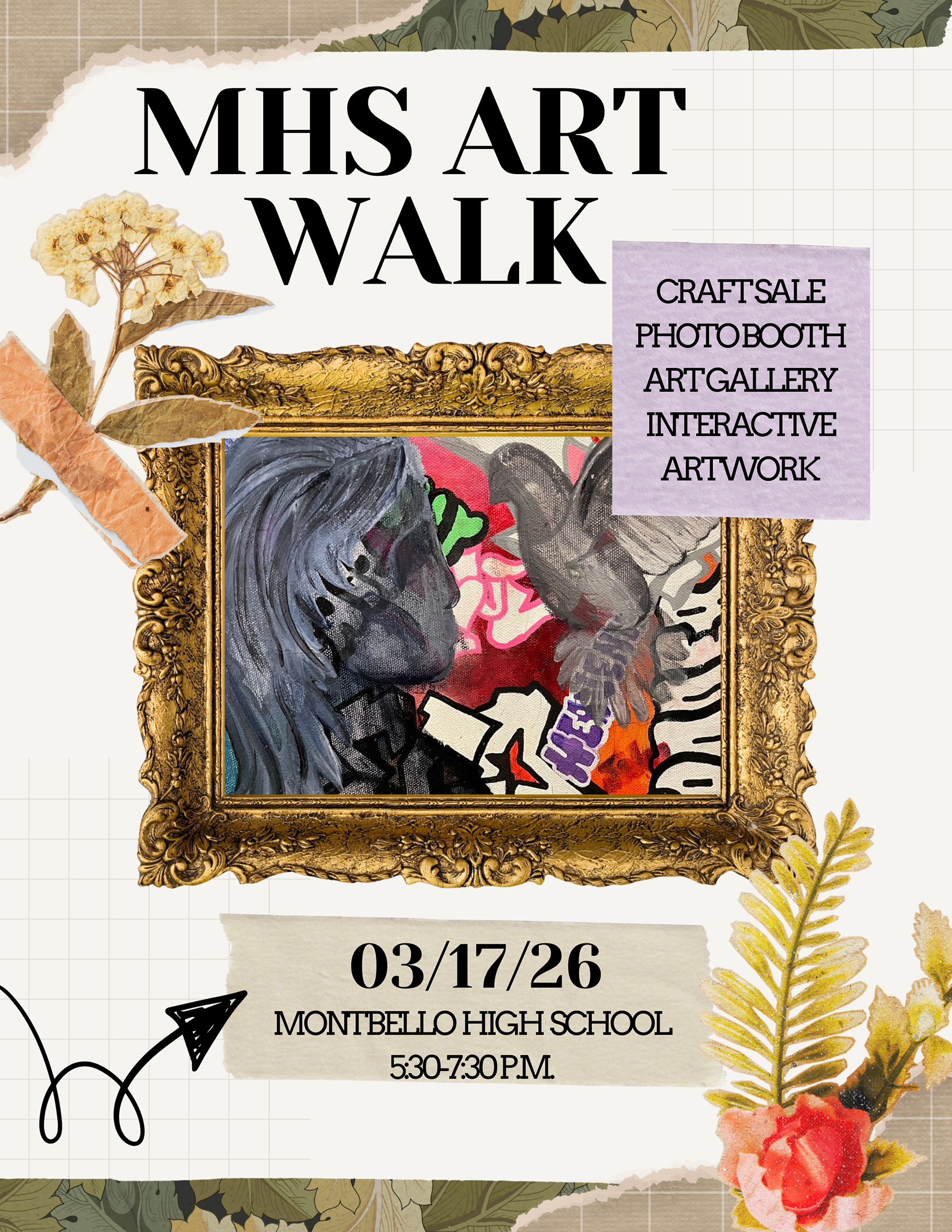 Join us for our Montbello High School Art Walk on Tuesday, March 17th from 5:30pm to 7:30pm. We will have a craft sale, photo booth, a student art gallery and interactive artwork. If you have any questions, please contact our Main Office at 720-423-5900.