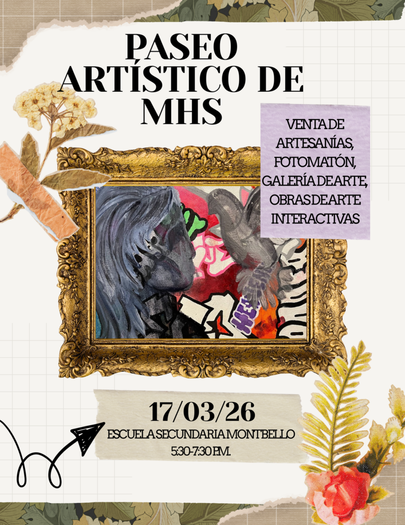 Acompáñenos a nuestro Paseo Artístico de la Preparatoria Montbello el martes 17 de marzo de 17:30 a 19:30. Tendremos venta de artesanías, fotomatón, galería de arte estudiantil y obras de arte interactivas. Si tiene alguna pregunta, comuníquese con nuestra oficina principal al 720-423-5900.